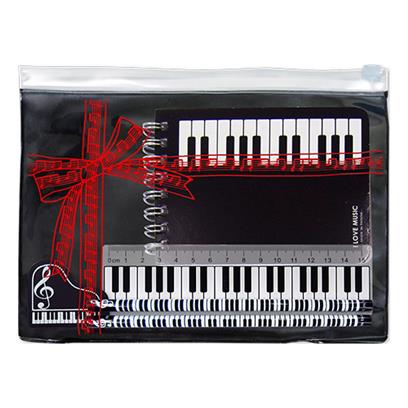 This stationery kit contains a large notebook, two pencils, a rubber and a 15cm ruler. Supplied in a keyboard design case. Part of the comprehensive range of music stationery gifts