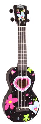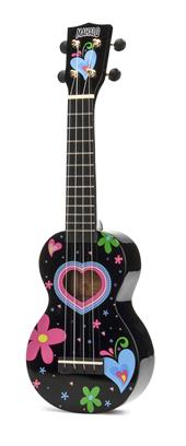 Five distinctive colorful ukuleles incorporating art, culture and humor with unique soundhole shapes in a great sounding ukulele that’s sure to impress.