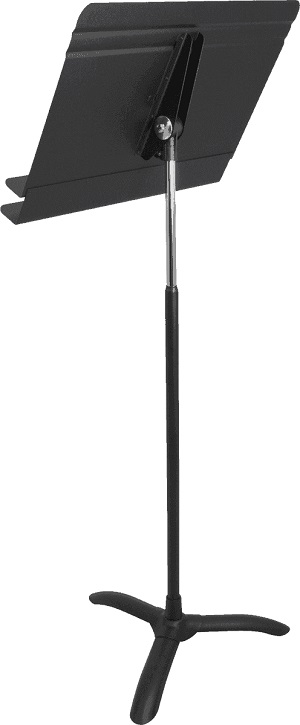 Afmetingen van het blad : breedte 51 cm, hoogte 32 cm. Regelbare stang van 66 cm tot 122 cm (153 cm met het blad). Speciaal ontwikkeld voor symfonische orkesten, de dubbele steun van het blad zorgt ervroor dat men zowel partituren kan plaatsen als een strijkstok, hars, potlood, rietjes onderaan het blad.