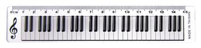 15 cm clear ruler with a keyboard design. Part of the comprehensive range of music stationery gifts