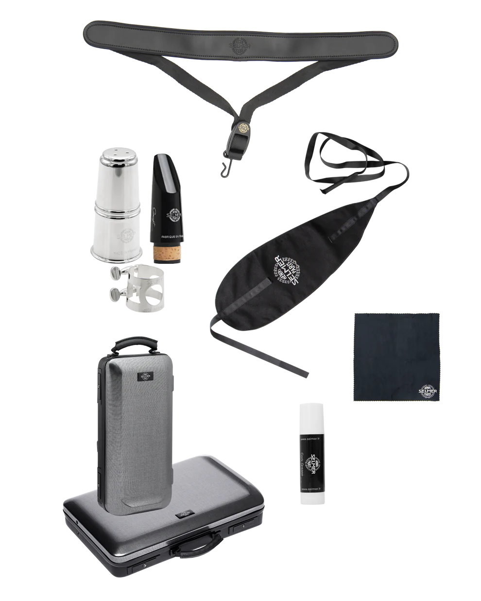 Inclus : bec Concept avec ligature et couvre-bec, kit entretien, étui PRiSMe (simple et double).