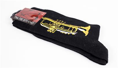 A great gift for any music enthusiast, these socks feature a black Trumpet design. Size 6-11.